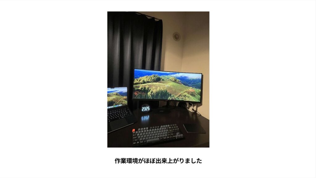 この発表では、自宅のPC作業環境を充実させていたり、そのほか日常で役立っているものについて紹介していただきました!
