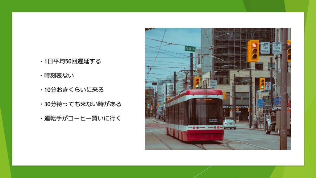 一時期カナダのトロントで生活されていた方の発表では、ご本人が直に体験した日本との違いや、そこから得た教訓について紹介していただきました!